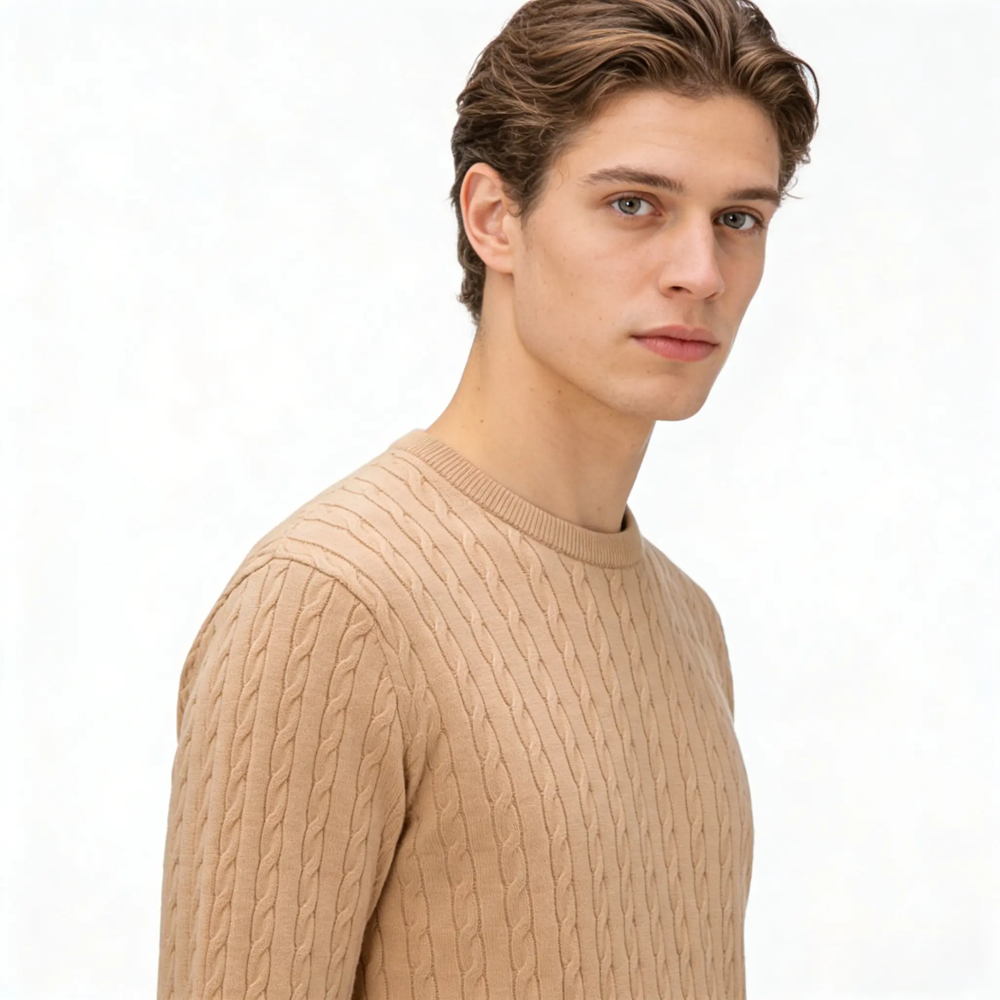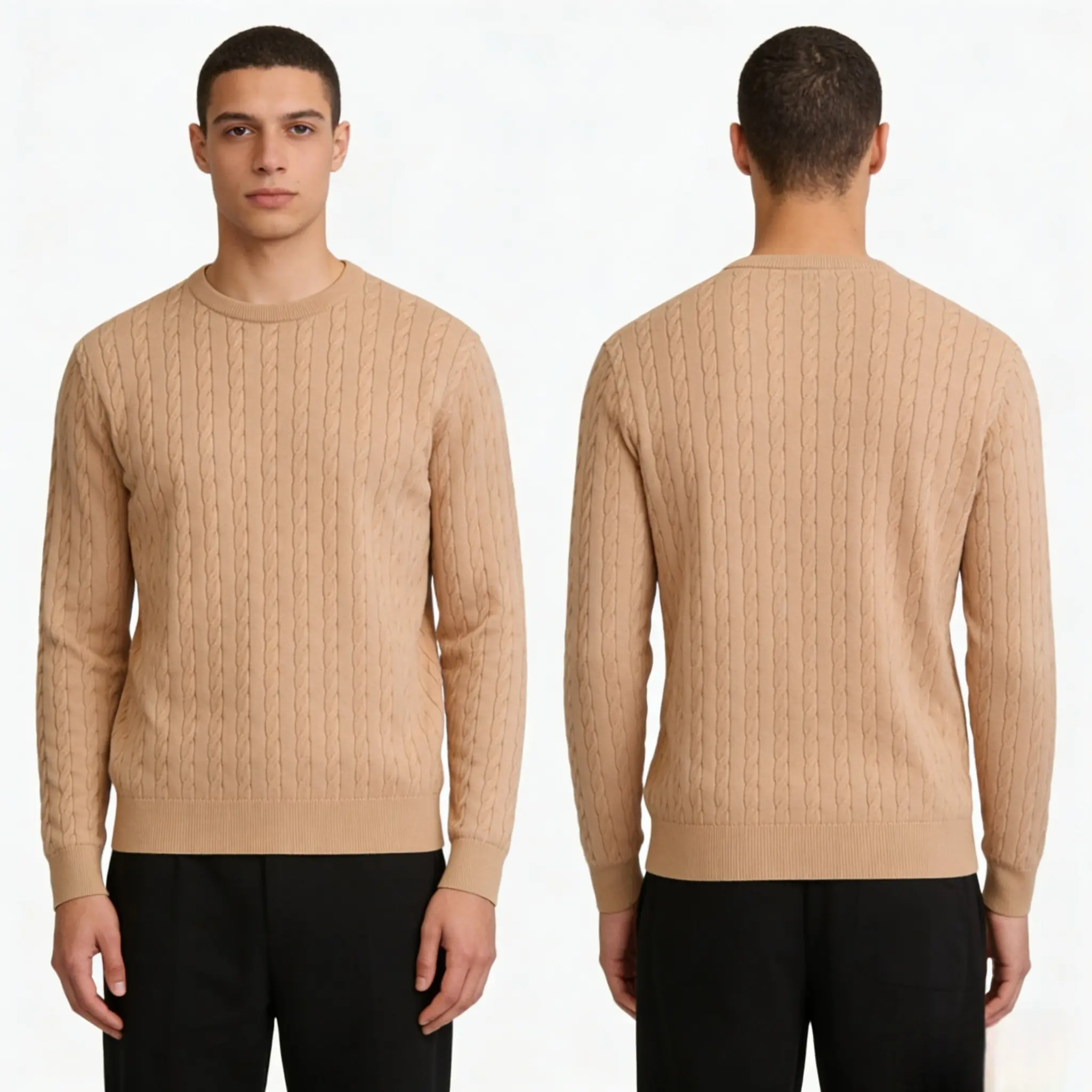 Rediscover the essence of timeless menswear with our Premium Cable-Knit Crewneck Sweater. This wardrobe staple combines a heritage-inspired aesthetic with modern manufacturing precision. Featuring a sophisticated rope-stitch pattern, it offers a textured, structured look that transitions effortlessly from professional office settings to casual weekend outings. Designed for durability and comfort, it is the ultimate layering piece for the discerning modern man.