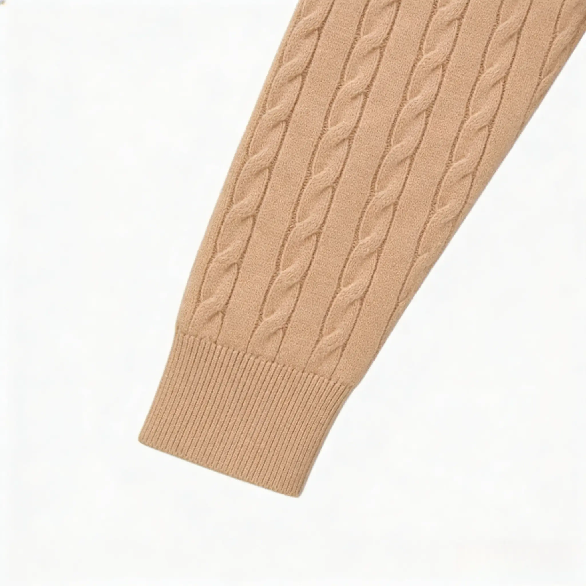 Craftsmanship: Multi-gauge vertical cable-knit (rope stitch) on the front, back, and sleeves for a rich, 3D texture.